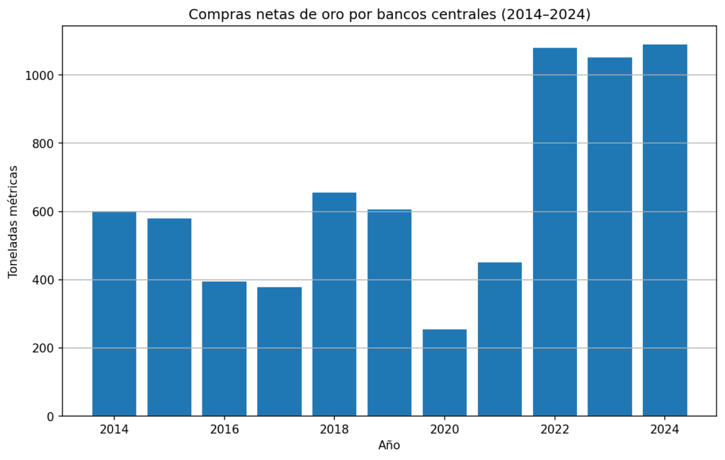 Uno de los grandes argumentos que explican la subida del oro ha sido el aumento significativo de las compras por parte de bancos centrales, especialmente en economías emergentes. No obstante, conviene introducir matices importantes: